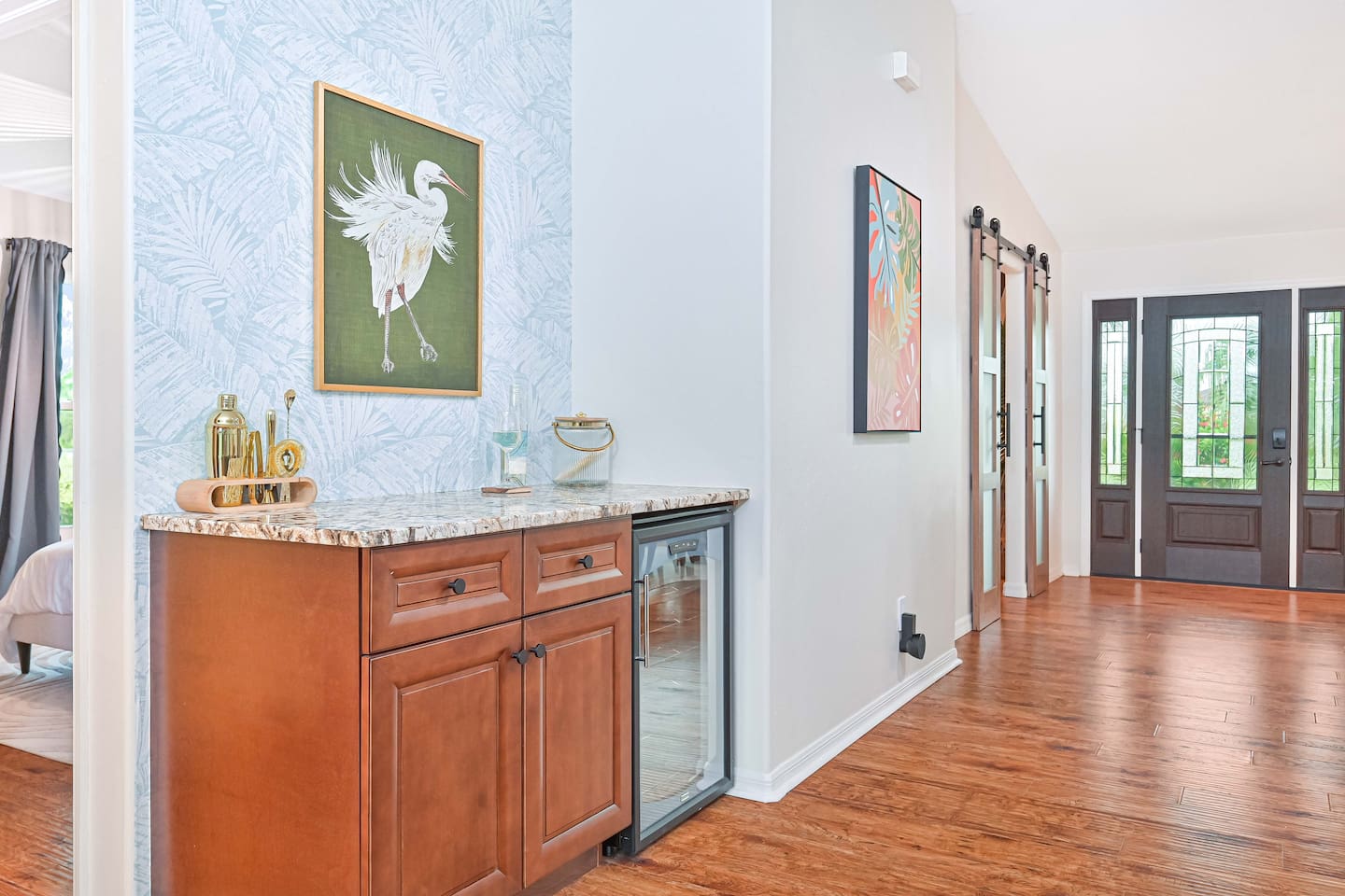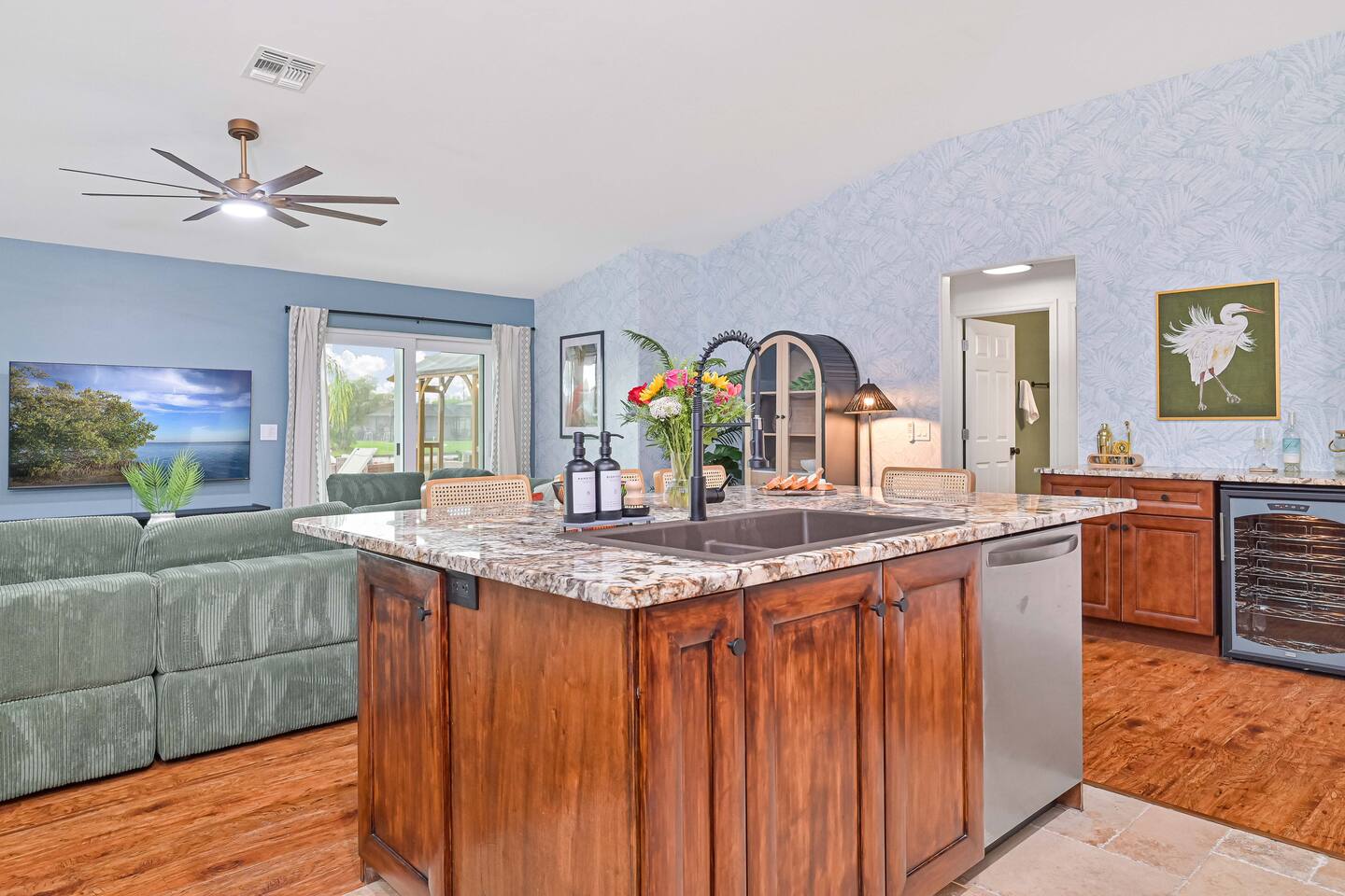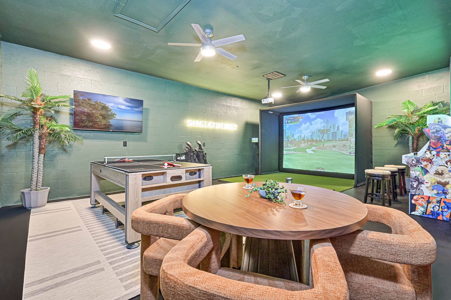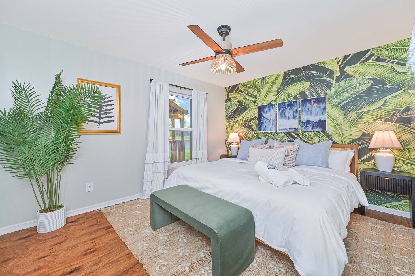 Discover your slice of paradise at The Lily Pad, a bright and breezy tropical getaway nestled along the peaceful freshwater canals of sun-soaked Cape Coral, Florida. Designed with families, friends, and adventurers in mind, this 4-bedroom, 2-bath retreat offers unforgettable experiences for guests of all ages—whether you're kayaking at sunset, challenging your swing on the indoor golf simulator, watching movies in the private cinema, or just soaking up the Florida sun by the saltwater pool.