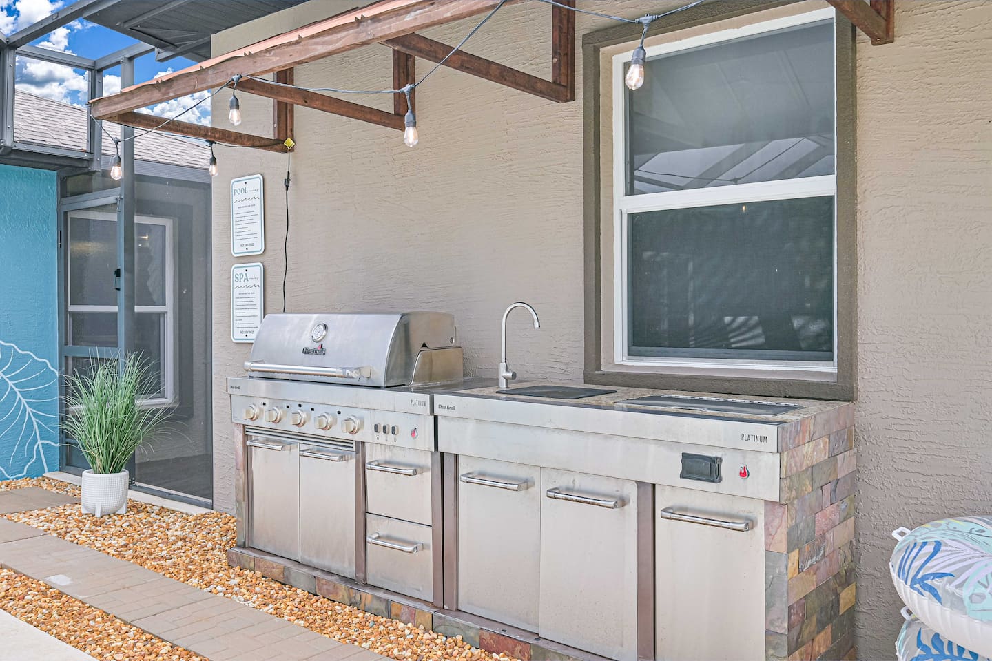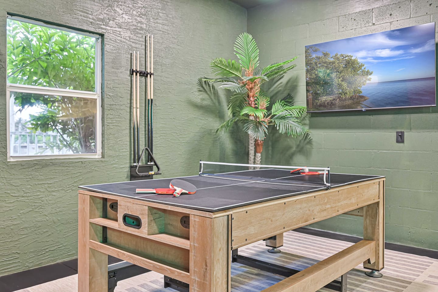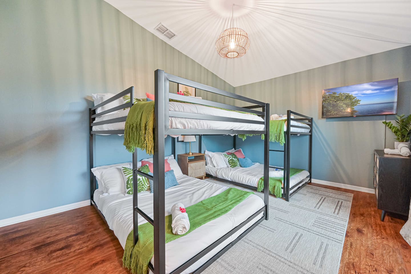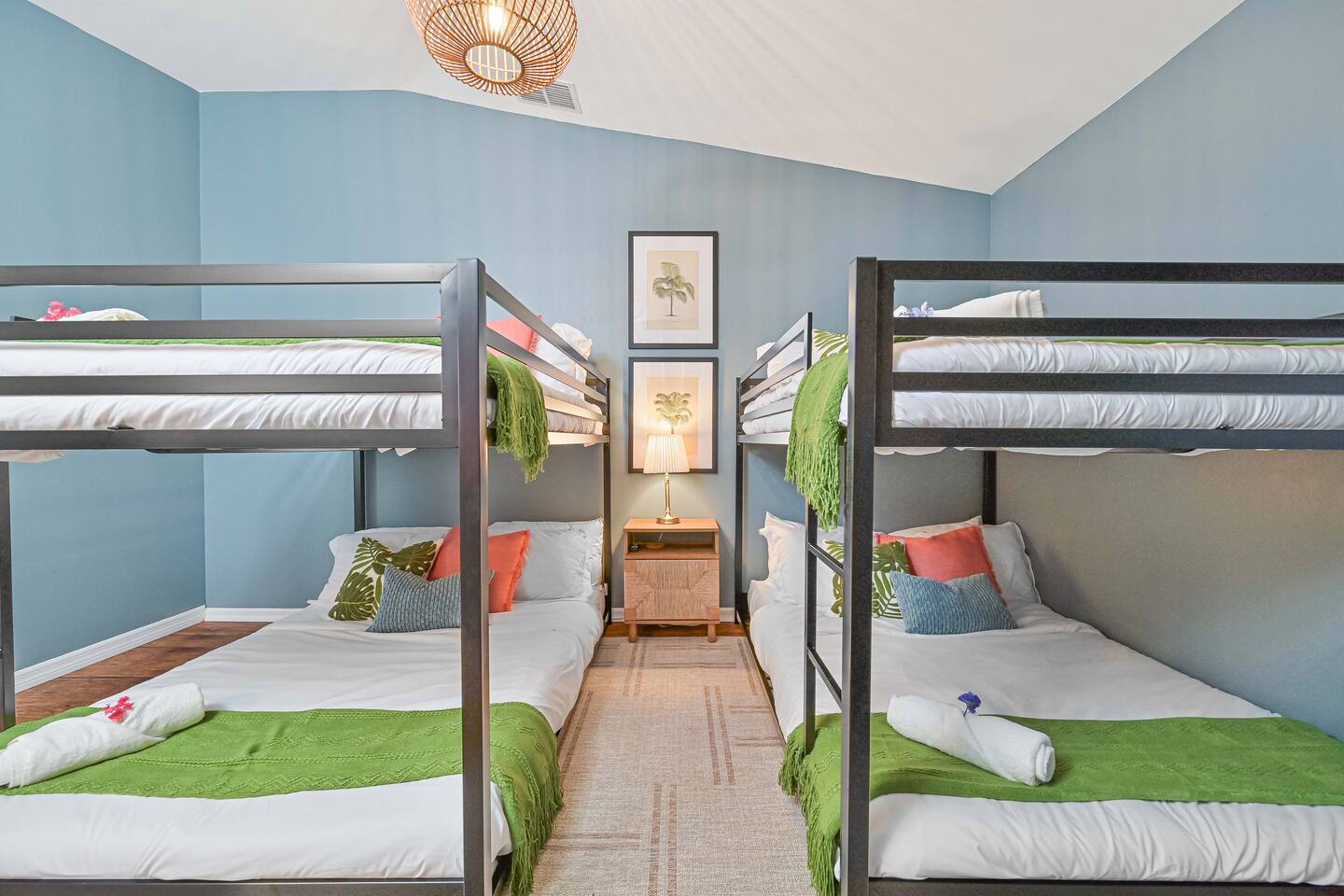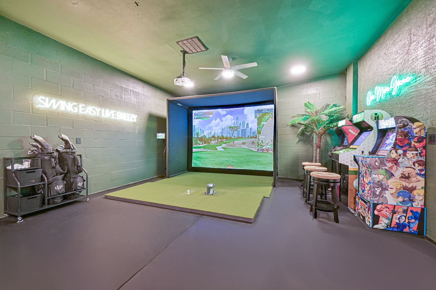 🌴 Welcome to The Lily Pad – Your Cape Coral Waterfront Escape! 🌴 ✨ Highlights You’ll Love: Heated saltwater pool & spa – With pool floaties and toys provided Private dock – Launch one of 4 kayaks, go fishing or relax by the water Ultimate Game Room – Features a golf simulator, arcade games, pool table, ping pong, air hockey, and foosball Full movie room – 135” projector screen, theater seating & popcorn machine Outdoor propane fire pit – For cozy evenings under the stars Yard games – Ladder ball, giant Jenga, basketball hoop, 4-in-a-row, and more Fully stocked beach gear – 10 chairs, umbrella, cooler, body boards, towels & toys Family friendly – Pack ’n Play, high chair, and bunk room for kids. Extra lock on the patio door to the pool for safety. Stylish tropical design & décor – Bright, modern, and thoughtfully curated for a true vacation vibe 🏡 Inside the Home: Spacious Living Area: An open-concept layout with comfortable seating, large windows, and peaceful canal views—perfect for relaxing, playing games, or enjoying quality time together. Chef’s Kitchen & Dining: A fully equipped kitchen awaits, stocked with everything you need to prepare delicious home-cooked meals. When it’s time to dine, choose between the spacious main dining table that seats 8, the sunny breakfast nook for 4, or pull up a stool at the kitchen island with seating for 4—plenty of room for everyone to gather, share stories, and enjoy great food together. Private Theater Room: Your private cinema experience awaits! Sink into comfy recliners, grab a fresh bucket of popcorn, and enjoy your favorite films on the 135” projector screen. Game Room Fun: Step into a true entertainment zone featuring a high-quality golf simulator—easy to use with an iPad and app, it’s perfect for practicing your swing or enjoying a casual round with friends right from the comfort of home. Plus, enjoy classic arcade games, a pool table, ping pong, air hockey, and foosball for nonstop fun for kids, teens, and adults alike. Bedrooms for Everyone: The Lily Pad comfortably sleeps up to 14 guests. The spacious master suite features a king-size bed and a private en suite bathroom, offering a peaceful retreat after a day of fun. The vibrant bunk room is perfect for kids or groups, with four full-size beds that provide plenty of space and comfort. Two additional beautifully decorated bedrooms offer relaxing accommodations—one with a queen-size bed, and the other with a king-size bed—making The Lily Pad ideal for families, friends, and multi-generational stays. Laundry Room: For your comfort and convenience, The Lily Pad includes a fully equipped laundry room with a washer, dryer, and a drying rack—perfect for swimsuits and beach towels after a day in the sun. You'll also find an iron, ironing board, and clothing steamer to keep everything looking fresh during your stay. ☀️ Outdoor Oasis: Step outside into your own private tropical retreat—spacious, scenic, and designed for both relaxation and play. The generous outdoor area features a screened-in lanai with a heated saltwater pool and spa, surrounded by pool loungers, a cushioned outdoor sofa, and a large dining table for al fresco meals. Fire up the gas grill for a poolside barbecue, or float the day away with the included pool floaties and toys. Step beyond the lanai to your oversized private dock, complete with a swinging bench—perfect for watching sunsets, fishing, or launching one of the four provided kayaks for a paddle along the peaceful canal. As evening falls, unwind under string lights, enjoy a dip in the lighted pool, or gather around the propane fire pit for a perfect end to the day. 🌴 Why Choose The Lily Pad? Packed with entertainment – Enjoy a golf simulator, movie theater, game room, pool, kayaks, and more Family-friendly amenities – Includes Pack ’n Play, high chair, bunk room, beach gear, and outdoor games Comfort & convenience – Fast Wi-Fi, Smart TVs, fully equipped kitchen, laundry room, and spacious living areas Great location – Easy access to beaches, restaurants, shopping, and local attractions in Cape Coral and Fort Myers 📅 Book your stay at The Lily Pad today and experience the best of Cape Coral—where fun, relaxation, and unforgettable memories are just a click away!