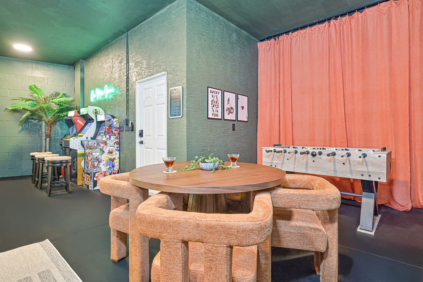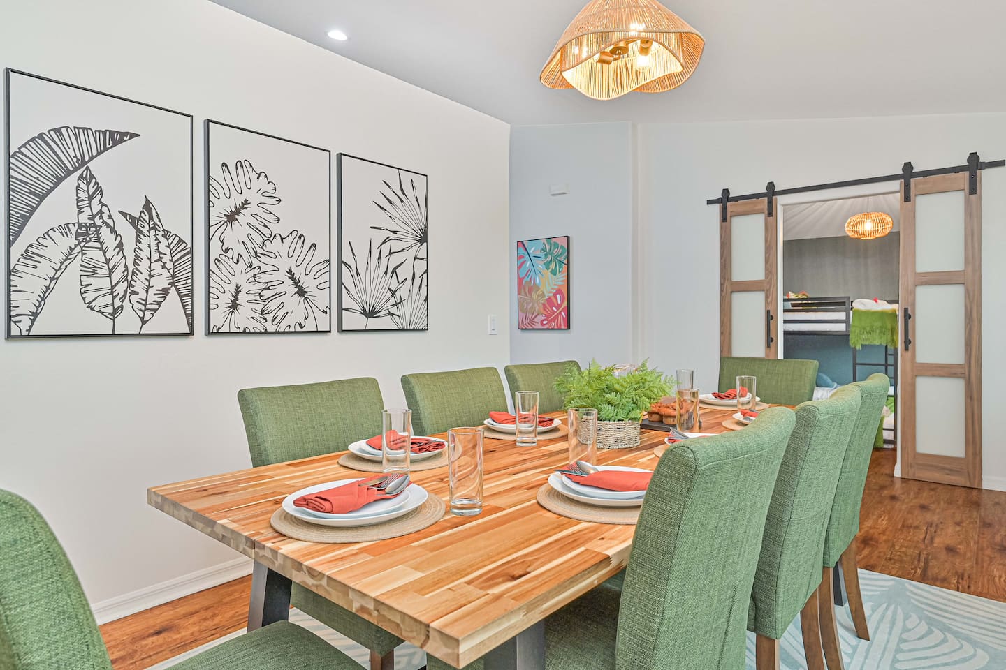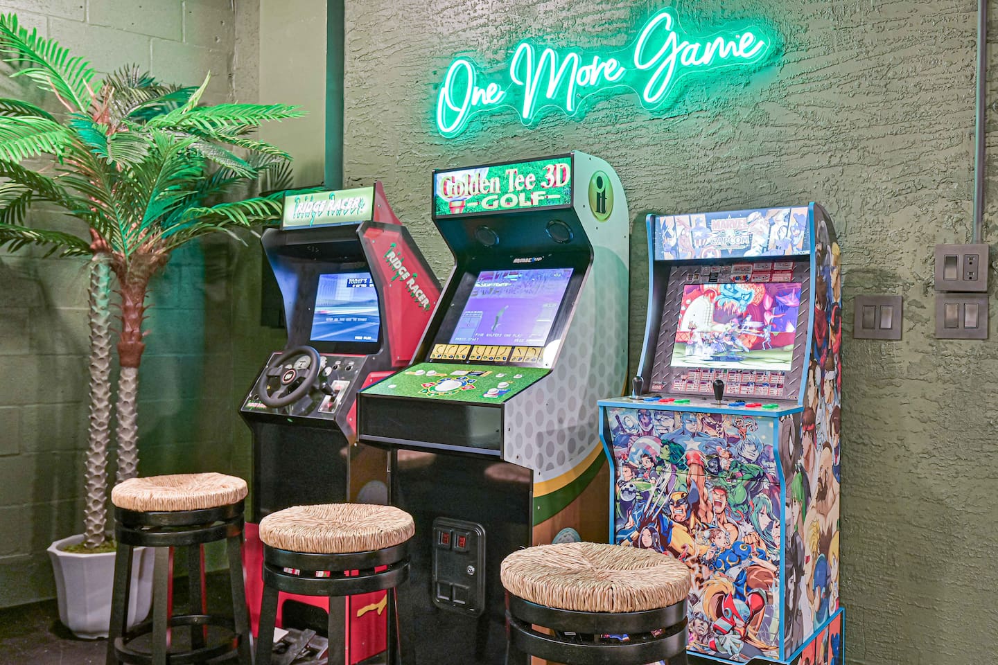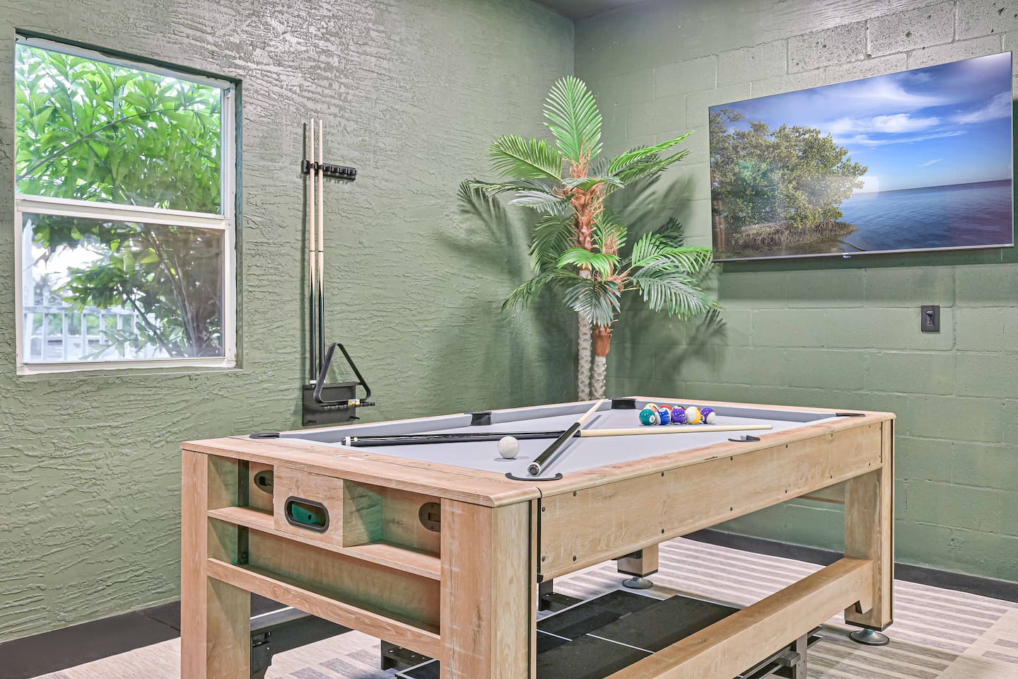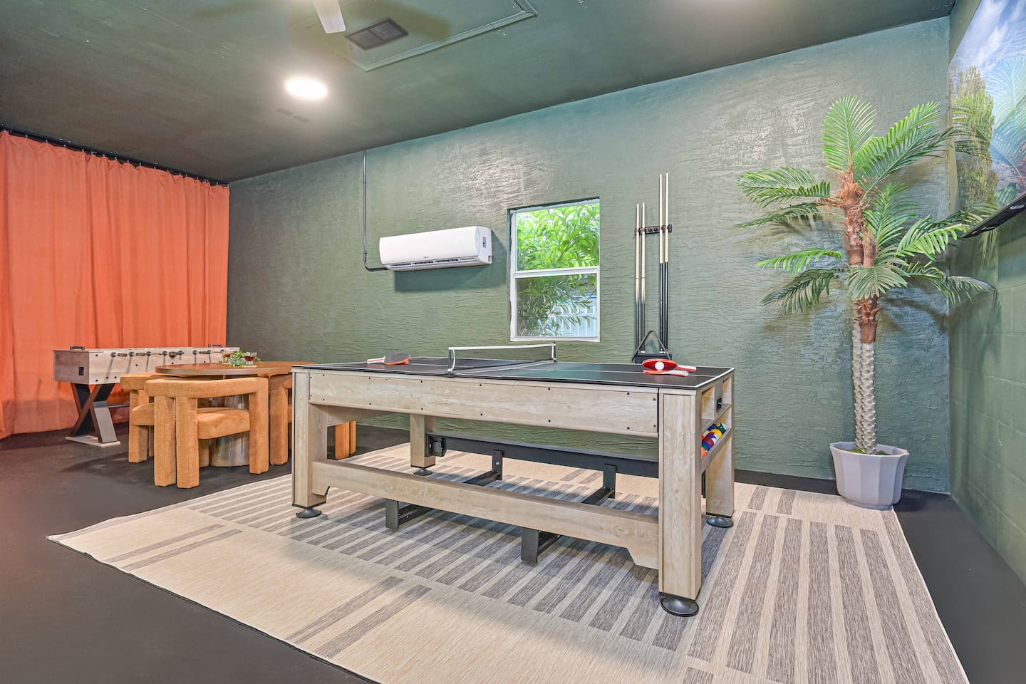 🌴 Welcome to The Lily Pad – Your Cape Coral Waterfront Escape! 🌴 ✨ Highlights You’ll Love: Heated saltwater pool & spa – With pool floaties and toys provided Private dock – Launch one of 4 kayaks, go fishing or relax by the water Ultimate Game Room – Features a golf simulator, arcade games, pool table, ping pong, air hockey, and foosball Full movie room – 135” projector screen, theater seating & popcorn machine Outdoor propane fire pit – For cozy evenings under the stars Yard games – Ladder ball, giant Jenga, basketball hoop, 4-in-a-row, and more Fully stocked beach gear – 10 chairs, umbrella, cooler, body boards, towels & toys Family friendly – Pack ’n Play, high chair, and bunk room for kids. Extra lock on the patio door to the pool for safety. Stylish tropical design & décor – Bright, modern, and thoughtfully curated for a true vacation vibe 🏡 Inside the Home: Spacious Living Area: An open-concept layout with comfortable seating, large windows, and peaceful canal views—perfect for relaxing, playing games, or enjoying quality time together. Chef’s Kitchen & Dining: A fully equipped kitchen awaits, stocked with everything you need to prepare delicious home-cooked meals. When it’s time to dine, choose between the spacious main dining table that seats 8, the sunny breakfast nook for 4, or pull up a stool at the kitchen island with seating for 4—plenty of room for everyone to gather, share stories, and enjoy great food together. Private Theater Room: Your private cinema experience awaits! Sink into comfy recliners, grab a fresh bucket of popcorn, and enjoy your favorite films on the 135” projector screen. Game Room Fun: Step into a true entertainment zone featuring a high-quality golf simulator—easy to use with an iPad and app, it’s perfect for practicing your swing or enjoying a casual round with friends right from the comfort of home. Plus, enjoy classic arcade games, a pool table, ping pong, air hockey, and foosball for nonstop fun for kids, teens, and adults alike. Bedrooms for Everyone: The Lily Pad comfortably sleeps up to 14 guests. The spacious master suite features a king-size bed and a private en suite bathroom, offering a peaceful retreat after a day of fun. The vibrant bunk room is perfect for kids or groups, with four full-size beds that provide plenty of space and comfort. Two additional beautifully decorated bedrooms offer relaxing accommodations—one with a queen-size bed, and the other with a king-size bed—making The Lily Pad ideal for families, friends, and multi-generational stays. Laundry Room: For your comfort and convenience, The Lily Pad includes a fully equipped laundry room with a washer, dryer, and a drying rack—perfect for swimsuits and beach towels after a day in the sun. You'll also find an iron, ironing board, and clothing steamer to keep everything looking fresh during your stay. ☀️ Outdoor Oasis: Step outside into your own private tropical retreat—spacious, scenic, and designed for both relaxation and play. The generous outdoor area features a screened-in lanai with a heated saltwater pool and spa, surrounded by pool loungers, a cushioned outdoor sofa, and a large dining table for al fresco meals. Fire up the gas grill for a poolside barbecue, or float the day away with the included pool floaties and toys. Step beyond the lanai to your oversized private dock, complete with a swinging bench—perfect for watching sunsets, fishing, or launching one of the four provided kayaks for a paddle along the peaceful canal. As evening falls, unwind under string lights, enjoy a dip in the lighted pool, or gather around the propane fire pit for a perfect end to the day. 🌴 Why Choose The Lily Pad? Packed with entertainment – Enjoy a golf simulator, movie theater, game room, pool, kayaks, and more Family-friendly amenities – Includes Pack ’n Play, high chair, bunk room, beach gear, and outdoor games Comfort & convenience – Fast Wi-Fi, Smart TVs, fully equipped kitchen, laundry room, and spacious living areas Great location – Easy access to beaches, restaurants, shopping, and local attractions in Cape Coral and Fort Myers 📅 Book your stay at The Lily Pad today and experience the best of Cape Coral—where fun, relaxation, and unforgettable memories are just a click away!