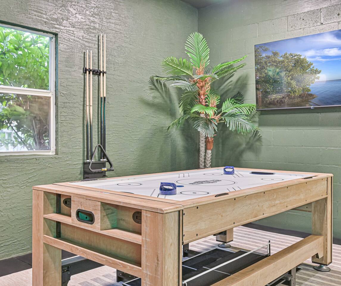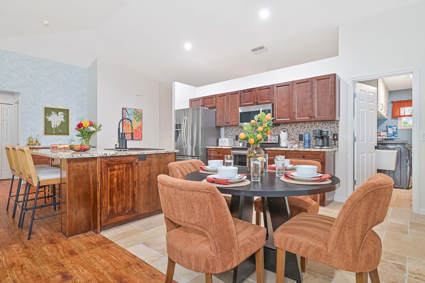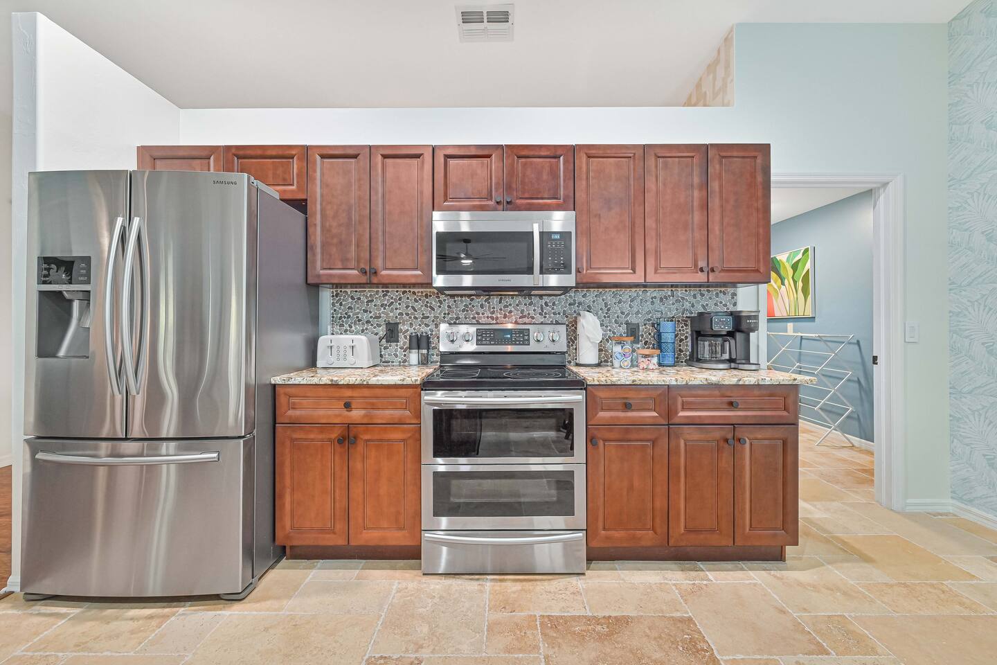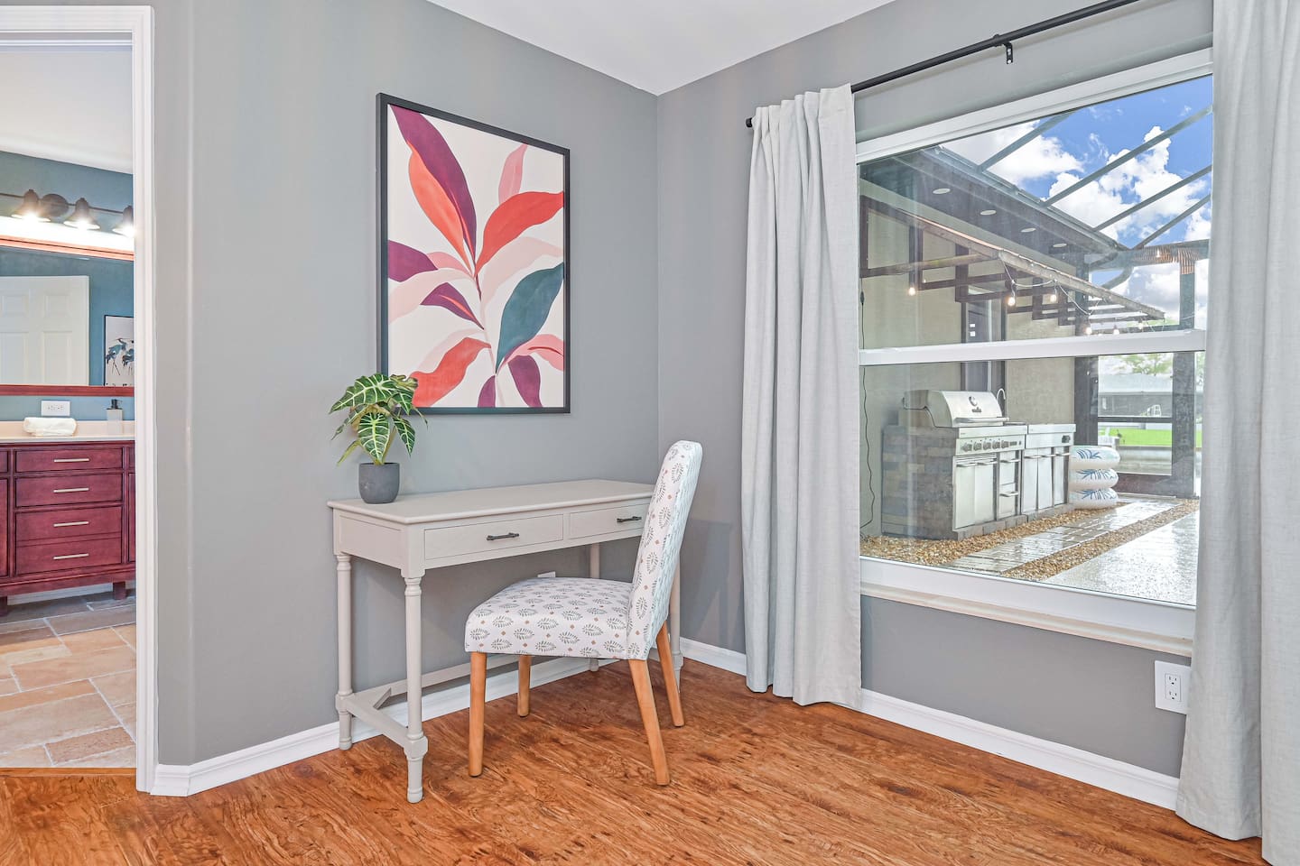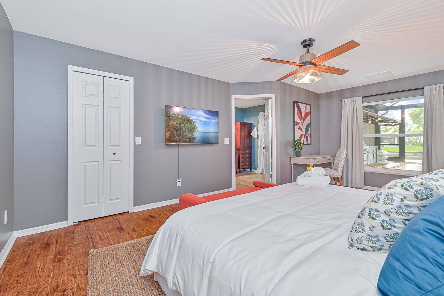 🌴 Welcome to The Lily Pad – Your Cape Coral Waterfront Escape! 🌴 ✨ Highlights You’ll Love: Heated saltwater pool & spa – With pool floaties and toys provided Private dock – Launch one of 4 kayaks, go fishing or relax by the water Ultimate Game Room – Features a golf simulator, arcade games, pool table, ping pong, air hockey, and foosball Full movie room – 135” projector screen, theater seating & popcorn machine Outdoor propane fire pit – For cozy evenings under the stars Yard games – Ladder ball, giant Jenga, basketball hoop, 4-in-a-row, and more Fully stocked beach gear – 10 chairs, umbrella, cooler, body boards, towels & toys Family friendly – Pack ’n Play, high chair, and bunk room for kids. Extra lock on the patio door to the pool for safety. Stylish tropical design & décor – Bright, modern, and thoughtfully curated for a true vacation vibe 🏡 Inside the Home: Spacious Living Area: An open-concept layout with comfortable seating, large windows, and peaceful canal views—perfect for relaxing, playing games, or enjoying quality time together. Chef’s Kitchen & Dining: A fully equipped kitchen awaits, stocked with everything you need to prepare delicious home-cooked meals. When it’s time to dine, choose between the spacious main dining table that seats 8, the sunny breakfast nook for 4, or pull up a stool at the kitchen island with seating for 4—plenty of room for everyone to gather, share stories, and enjoy great food together. Private Theater Room: Your private cinema experience awaits! Sink into comfy recliners, grab a fresh bucket of popcorn, and enjoy your favorite films on the 135” projector screen. Game Room Fun: Step into a true entertainment zone featuring a high-quality golf simulator—easy to use with an iPad and app, it’s perfect for practicing your swing or enjoying a casual round with friends right from the comfort of home. Plus, enjoy classic arcade games, a pool table, ping pong, air hockey, and foosball for nonstop fun for kids, teens, and adults alike. Bedrooms for Everyone: The Lily Pad comfortably sleeps up to 14 guests. The spacious master suite features a king-size bed and a private en suite bathroom, offering a peaceful retreat after a day of fun. The vibrant bunk room is perfect for kids or groups, with four full-size beds that provide plenty of space and comfort. Two additional beautifully decorated bedrooms offer relaxing accommodations—one with a queen-size bed, and the other with a king-size bed—making The Lily Pad ideal for families, friends, and multi-generational stays. Laundry Room: For your comfort and convenience, The Lily Pad includes a fully equipped laundry room with a washer, dryer, and a drying rack—perfect for swimsuits and beach towels after a day in the sun. You'll also find an iron, ironing board, and clothing steamer to keep everything looking fresh during your stay. ☀️ Outdoor Oasis: Step outside into your own private tropical retreat—spacious, scenic, and designed for both relaxation and play. The generous outdoor area features a screened-in lanai with a heated saltwater pool and spa, surrounded by pool loungers, a cushioned outdoor sofa, and a large dining table for al fresco meals. Fire up the gas grill for a poolside barbecue, or float the day away with the included pool floaties and toys. Step beyond the lanai to your oversized private dock, complete with a swinging bench—perfect for watching sunsets, fishing, or launching one of the four provided kayaks for a paddle along the peaceful canal. As evening falls, unwind under string lights, enjoy a dip in the lighted pool, or gather around the propane fire pit for a perfect end to the day. 🌴 Why Choose The Lily Pad? Packed with entertainment – Enjoy a golf simulator, movie theater, game room, pool, kayaks, and more Family-friendly amenities – Includes Pack ’n Play, high chair, bunk room, beach gear, and outdoor games Comfort & convenience – Fast Wi-Fi, Smart TVs, fully equipped kitchen, laundry room, and spacious living areas Great location – Easy access to beaches, restaurants, shopping, and local attractions in Cape Coral and Fort Myers 📅 Book your stay at The Lily Pad today and experience the best of Cape Coral—where fun, relaxation, and unforgettable memories are just a click away!